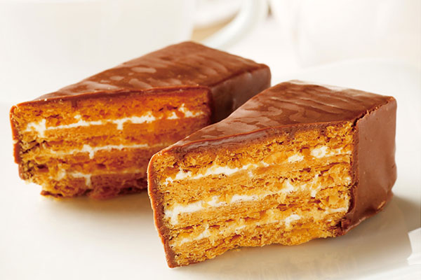 サクサクのパイで香ばしいプラリネクリームをサンドした四層仕立ての贅沢なチョコレート菓子。パティシエが一つひとつ手作りするオートクチュールスイーツです。