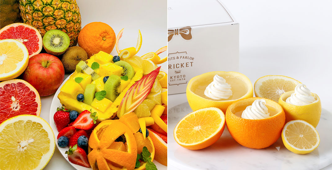 厳選された果物を丸ごと使った贅沢なフルーツゼリー。くり抜いた皮をそのまま器として使用し果物の風味を閉じ込め、中身の果汁をゼラチンで固めています。ご希望のお時間に、お部屋にお届けします。5,500円(5個)から注文可能。お好きな組み合わせで注文が可能。